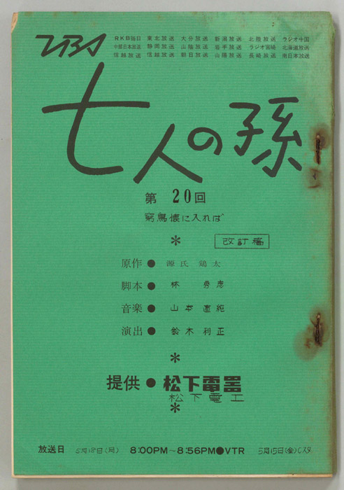 主な出演 : 森光子,北大路欣也,三木のり平,鰐渕晴子[鰐淵晴子],草笛光子,小林哲子,那須ますみ,吉川満子,清水紀八郎,一ノ木晶子- 作家 : 林秀彦