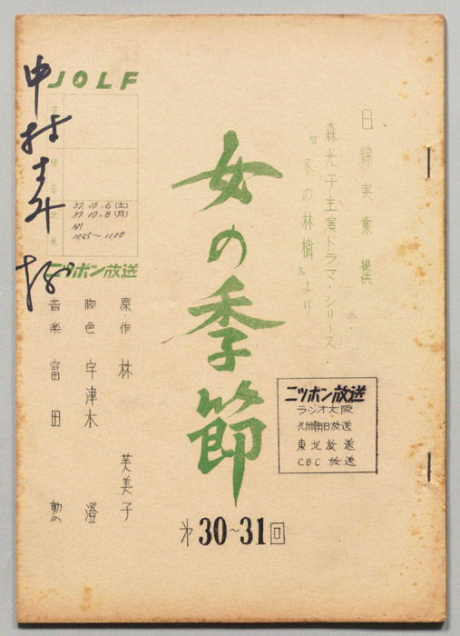 主な出演 : 森光子,藤波京子,中村すみ,安芸秀子,中川栄,(語り手)矢島正明