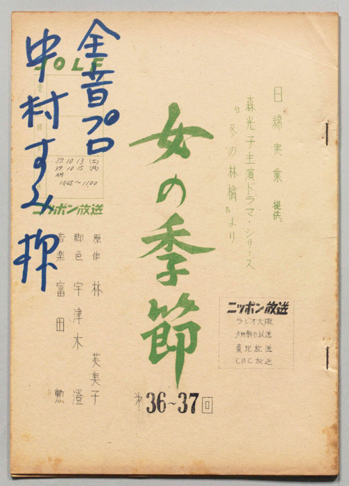主な出演 : 森光子,石橋健治,藤波京子,安芸秀子,恩田清二郎,中村すみ,中川栄,梶哲也,(語り手)矢島正明- 作家 : 宇津木澄