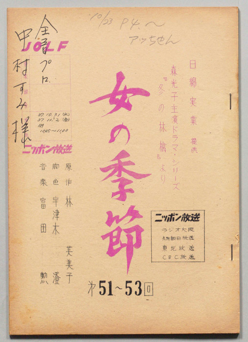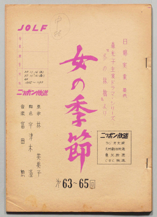 主な出演 : 森光子,中村すみ,,藤波京子,小木広子,筈見純,(語り手)矢島正明