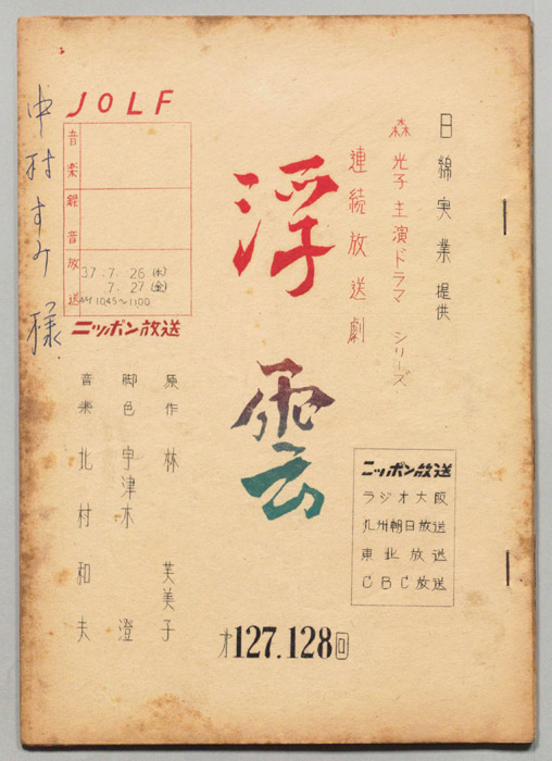 主な出演 : 森光子,安井昌二,安達国晴,野田雄司,井上孝雄,石橋健治,恩田清二郎,中村すみ,安芸秀子,(語り手)矢島正明- 作家 : 宇津木澄