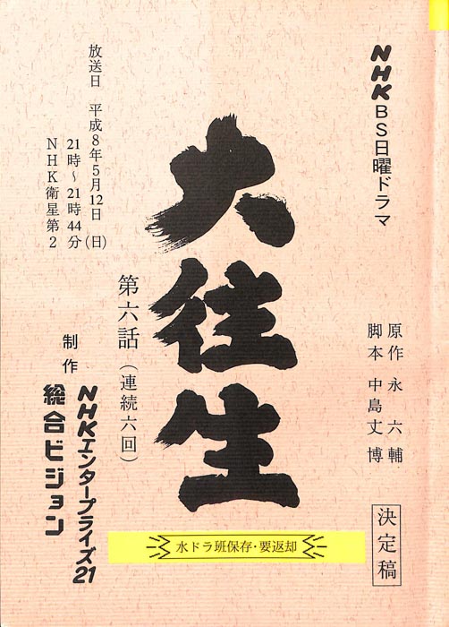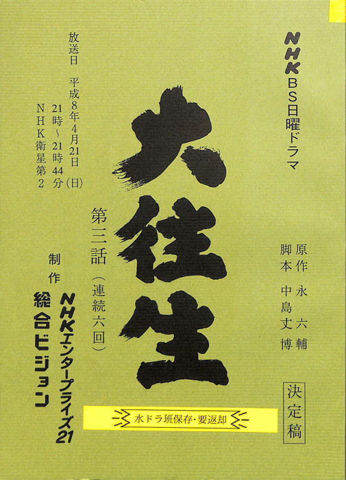 主な出演 : 柴田恭兵,岡本健一,大寶智子,中野英雄,唐木淳,渡辺哲,柄本明,萬田久子,西村晃,八木沢れいな- 作家 : 古内一成
