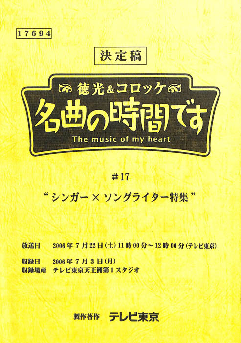 主な出演 : 石川さゆり,柏原芳恵,北川大介,小柳ルミ子,桜井くみ子,中村美律子,新妻聖子,新沼謙治,氷川きよし,ペギー葉山,小田切千