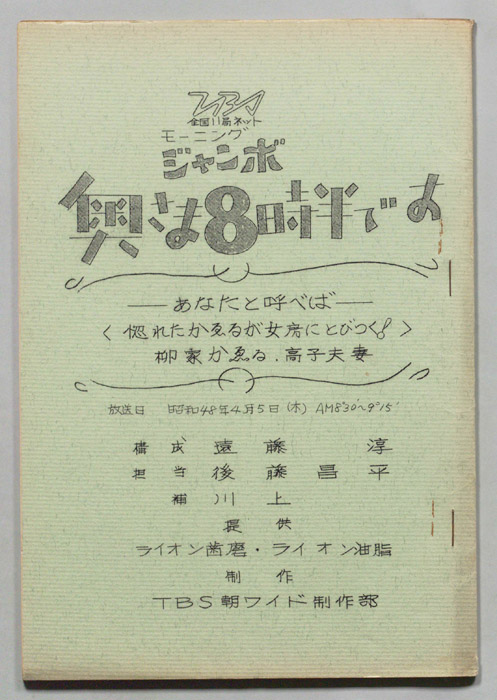 主な出演 : 柳家かえる,柳家小きん,久野四郎,宮地晴子,井上真樹夫,相川圭子,西尾徳,田村綿人,高田竜二,神山卓三,村松康雄,木原規之