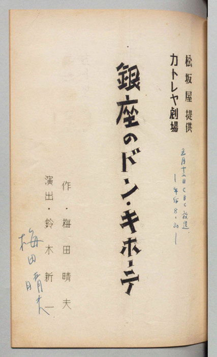 主な出演 : 平井真樹男,塚田兼久,平尾頼信,楢林和男,楠義孝,三木美知子,津島道子,大阪放送劇団,大阪放送児童劇団,花柳有洸社中,大阪放送合唱団,(演奏)大阪放送管弦楽団,(ハモンド演奏)中谷歌子