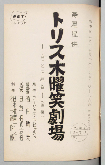 - 収蔵先 : 早稲田大学 坪内博士記念演劇博物館