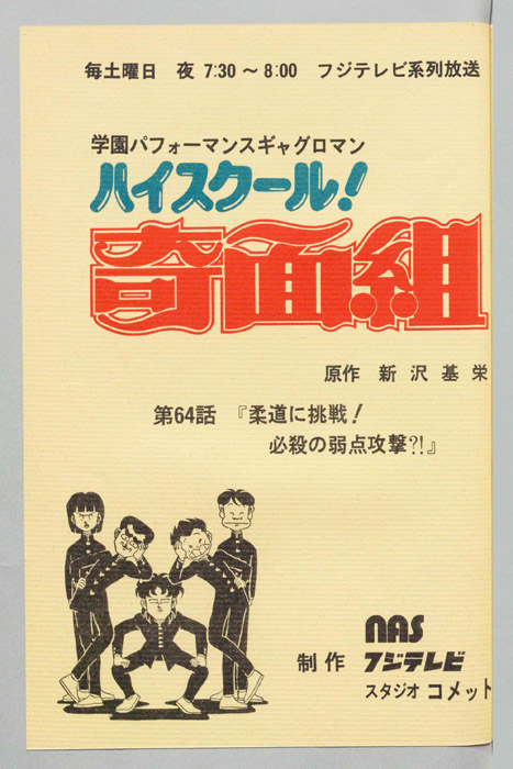 主な出演 : 谷公次,(ジョージ)稲葉実,(ヨーコ)柴田由美子,(外人A),(マネージャ),(女の客)大野由佳,(女店員)加藤雅子,(店長)佐藤正治【魁!!男塾(さきがけ!! おとこじゅく)】全国のはみだし者やならず者を集め、まるで戦場を思わせるほどのスパルタ教育によって男を磨き、真の男を育成するための男塾に入学した「剣桃太郎(つるぎももたろう)」は、塾長「江田島平八(えだじま へ