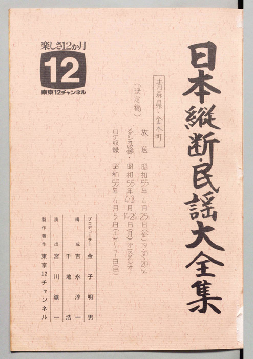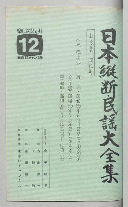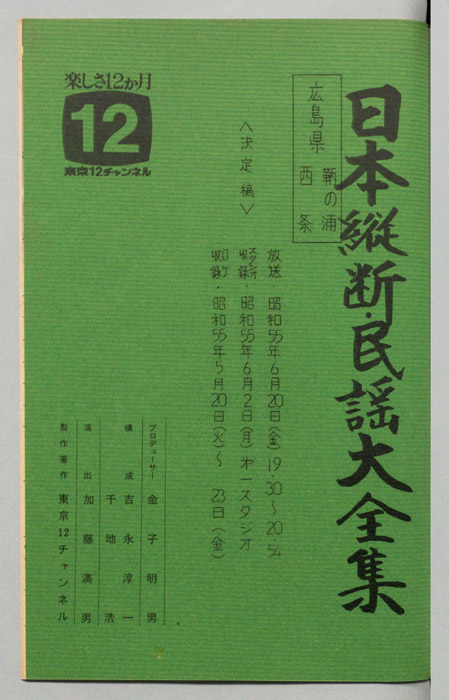 主な出演 : 大場いたる,金沢明子,山本謙司,由岐ひろみ,(ゲスト)日本大学民謡研究会,大東文化大学日本民謡研究会,日本大学応援団,(司会)玉置宏,(踊り)花柳啓之社中,(伴奏)藤本琇丈社中<三味線>藤本秀次,藤本秀輔,藤本秀三,藤本秀康,<鳴物>山