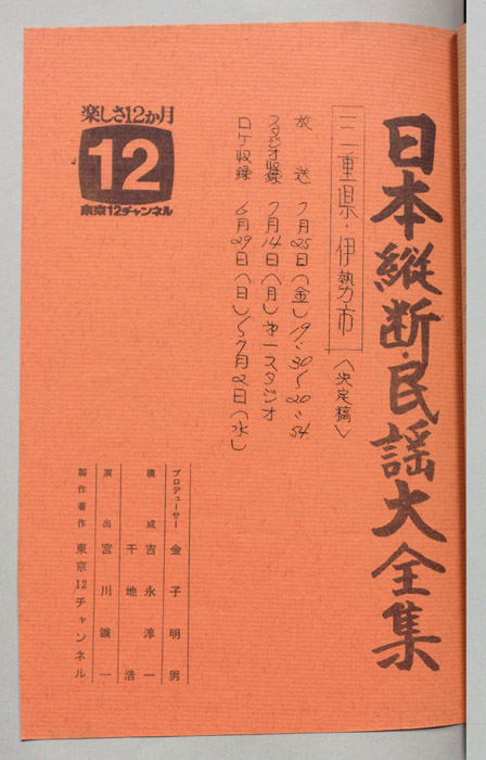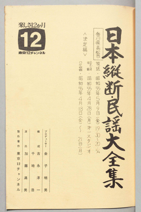 主な出演 : 金沢明子,久保京子,藤堂輝明,夏坂菊男,由岐ひろみ,愛媛県伊予長浜市豊年踊り保存会の皆さん,(司会)玉置宏,(伴奏)藤本琇丈社中<三味線>藤本秀次,藤本秀輔,藤本秀三,<鳴物>山田鶴助,山田鶴志,<唄囃子>志村春美,小宮かよ子,(尺八)米谷威和男
