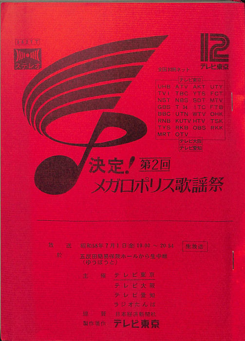 主な出演 : 大川栄策,田原俊彦,中森明菜,細川たかし,松田聖子,都はるみ,三笠優子,佳山明生,日野美歌,五木ひろし,西城秀樹,沢田研二,八代亜紀,いとう麻衣子,井上杏美,岩井小百合,大沢逸美,小野さとる,織江舞子,木元ゆうこ,桑田靖子,小久保尚美,佐