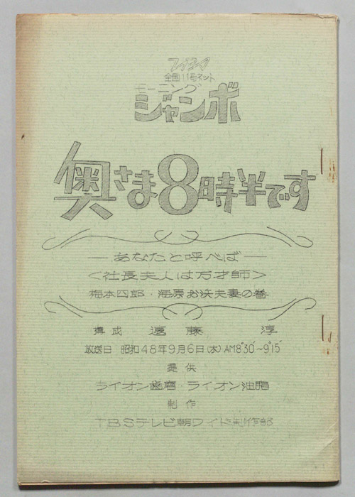 主な出演 : 大出俊,三田佳子,丹阿弥谷津子,東恵美子,北林さなえ,加藤玉枝,綱島,井島ゆき子,中村きね子,中村まり子- 作家 : 土井行夫
