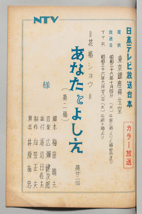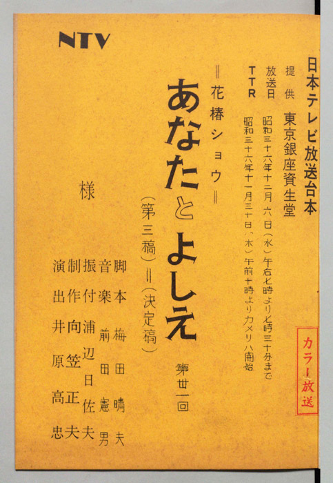 主な出演 : 水谷良重,西村晃,小沢昭一,柳沢真一,芳村真理,藤村有弘,伊藤素道とリリオ・リズム・エアーズ,スタジオ№1ダンサーズ:浦辺日佐夫,小井戸秀宅,斉藤健一,城政幸,中北万里子,名倉加代子,今喜世,平井あつ子,米良栄子,橋本佐智子