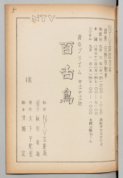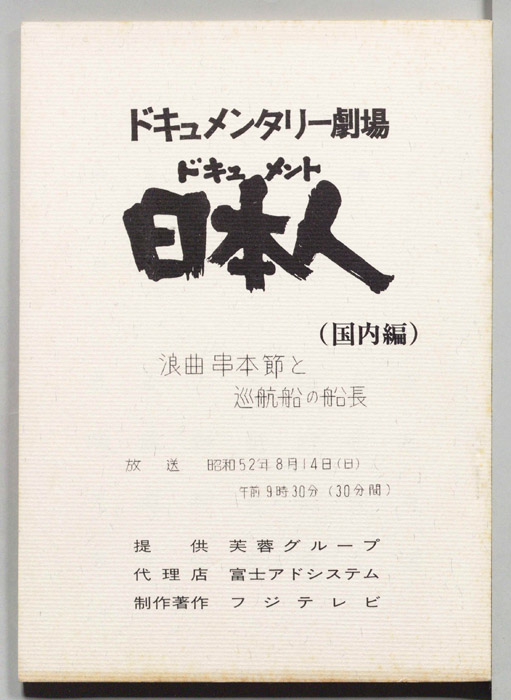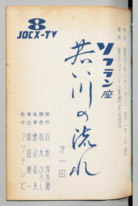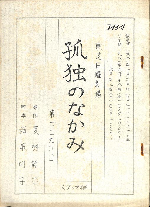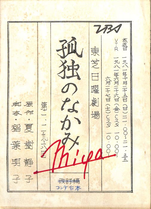 主な出演 : 研ナオコ,酒井和歌子,江波杏子,三国連太郎,松崎しげる,岸部シロー,赤塚真人,高岡健二,谷川みゆき,青地公美,津島要,南風洋子,南原宏治,高田敏江,小瀬格,梅野泰靖,清水まゆみ,城倉(ページが破れているため名は不明),及川(氏- 作家 : 田渕久美子