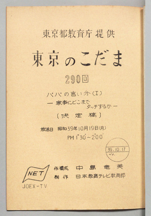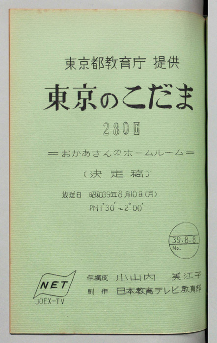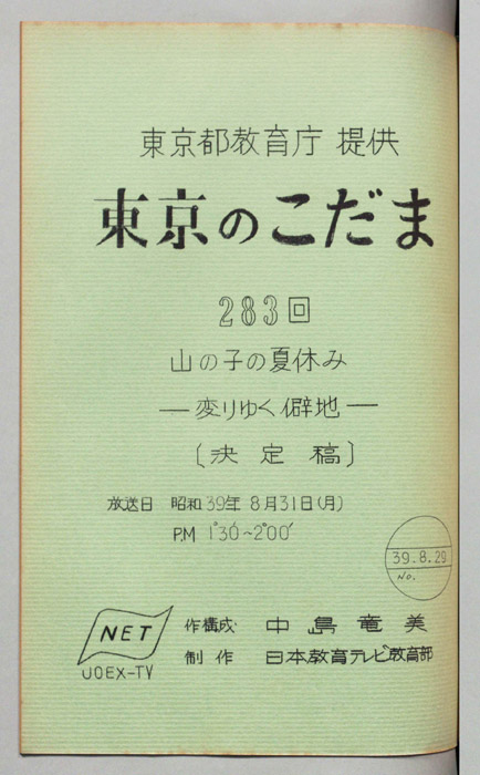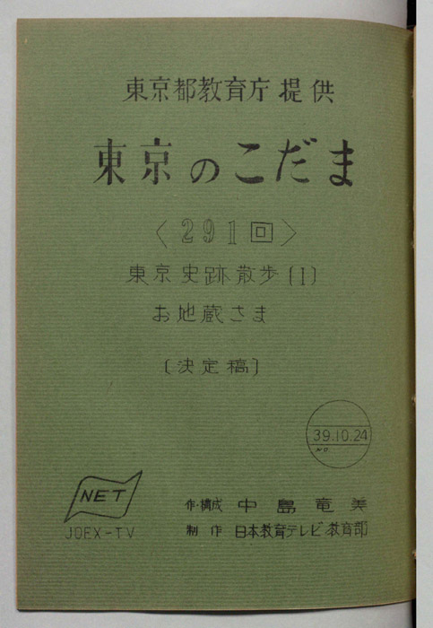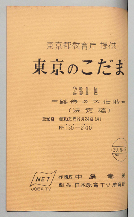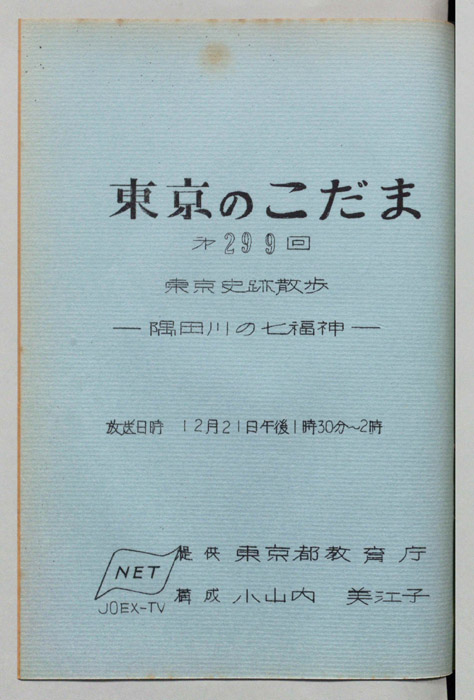 主な出演 : 宮本常一,加太こうじ,(司会)前田武彦,長尾恵美子アナウンサー,(ナレーター)長尾恵美子アナウンサー