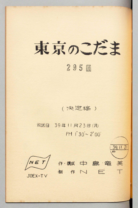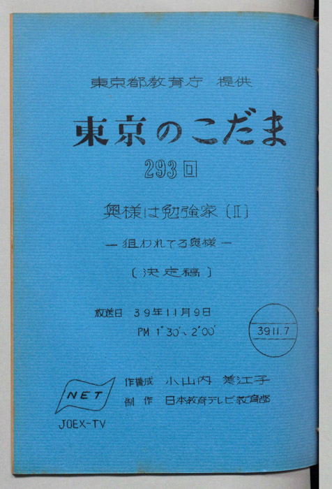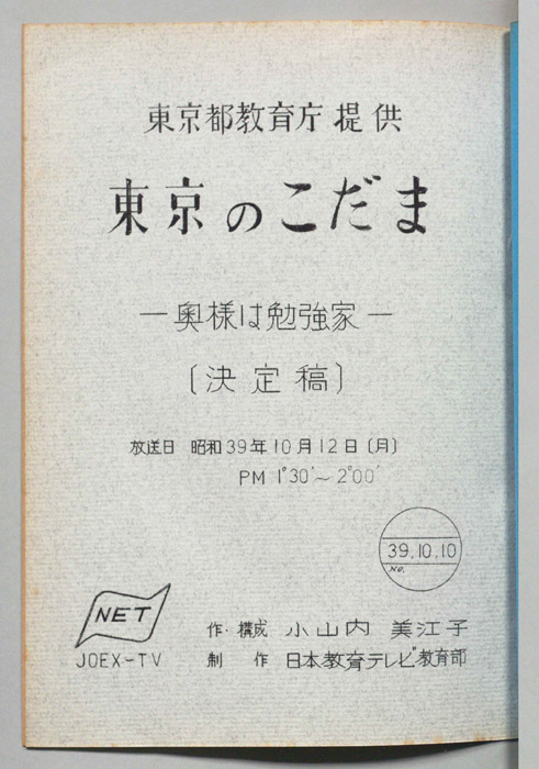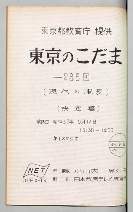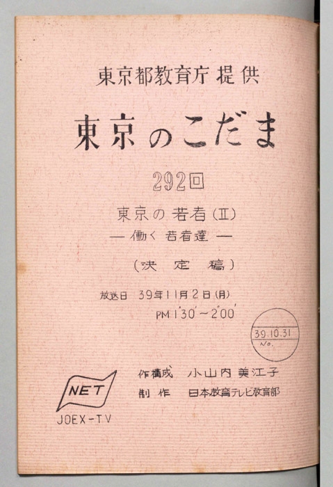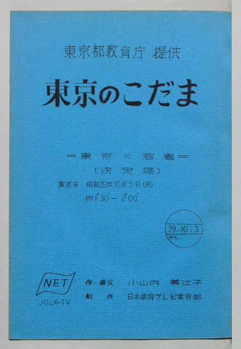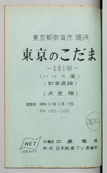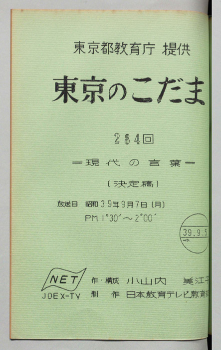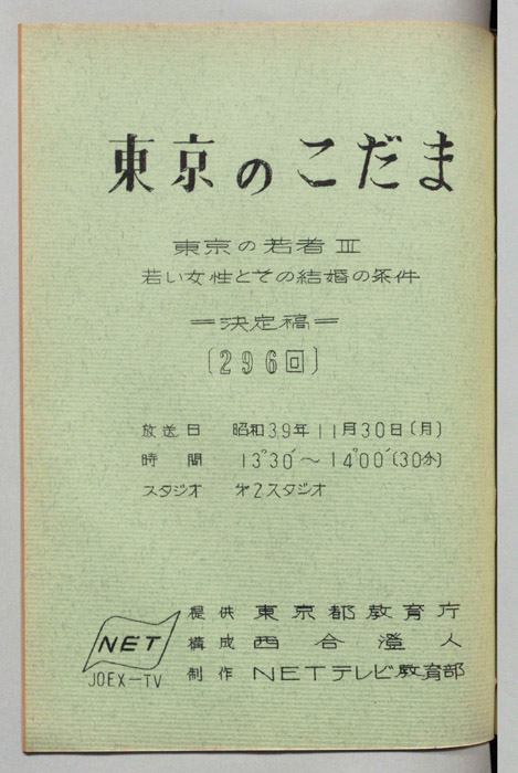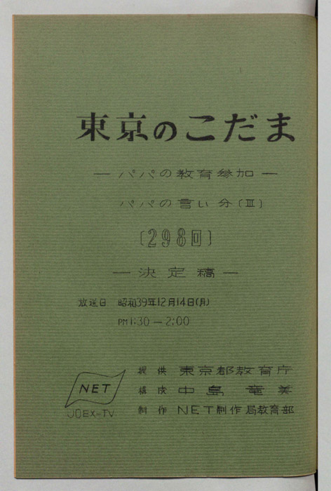 主な出演 : 石川弘義,田伏中子,(司会)前田武彦,長尾恵美子アナウンサー,(ナレーター)長尾恵美子アナウンサー