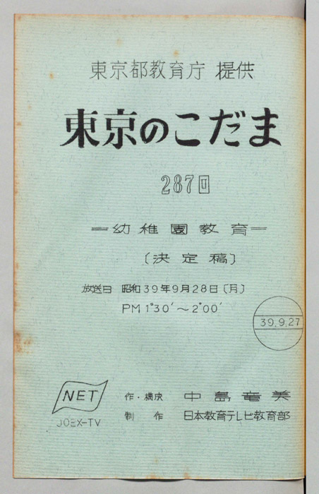 主な出演 : 増山仁太郎,遠藤吾郎,広畑美恵,他児童の皆さん,(司会)前田武彦,亀谷慶子アナウンサー,(フィルムナレーター)亀谷慶子アナウンサー