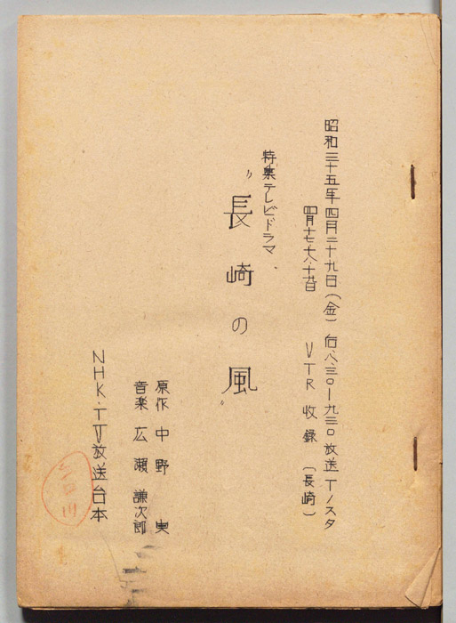 主な出演 : 下元勉,加藤治子,夏川静江,高野由美,大町文夫,赤城蘭子,宮内順子,三浦梨花,田中久仁代,光永日沙子,長崎放送劇団,長崎本籠町有志,活水学院寮生,塩﨑純子,荒木宏土,秋田和子
