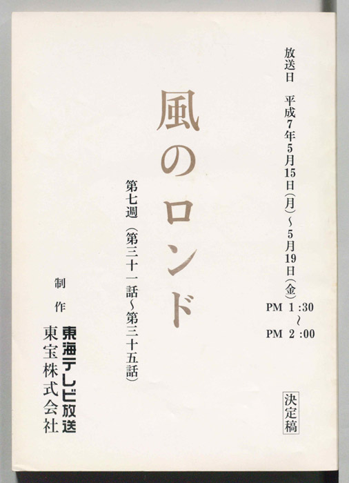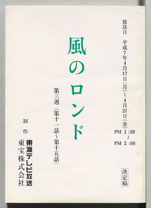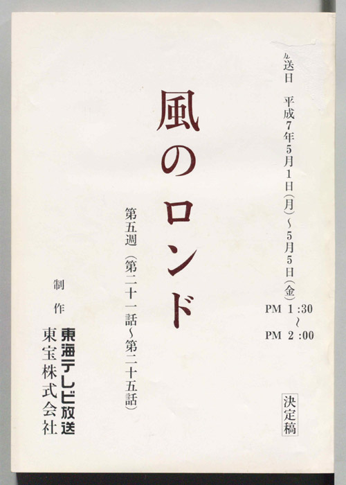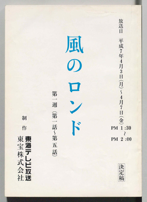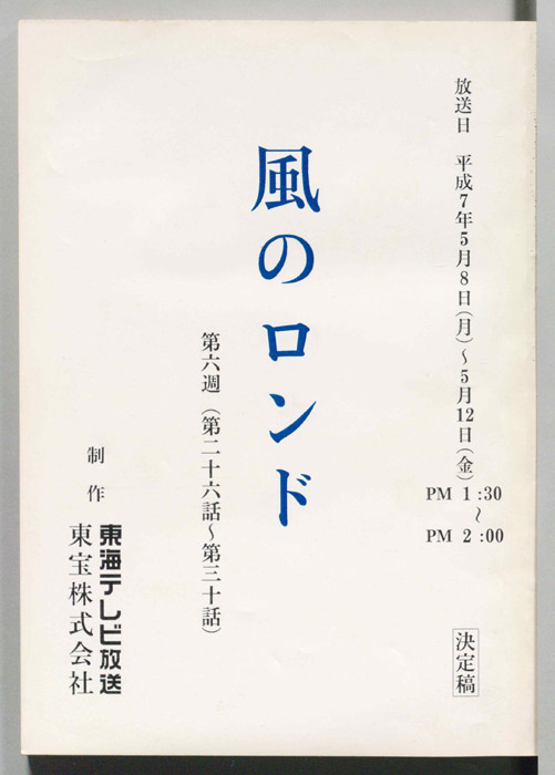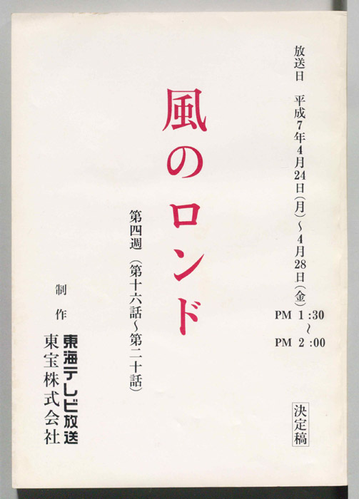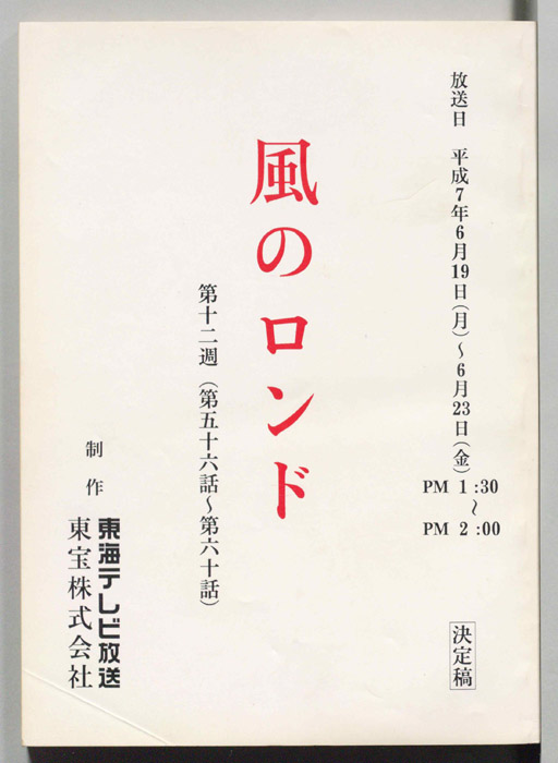 主な出演 : 田村亮,野口ふみえ,新藤恵美沼スタイル」を作ったと言われる「中島丈博」、主演を務めた森口瑤子は数々のドラマや映画に出演し、現在も母親役等、多くの出演作がある。原作漫画のタイトルは「風の輪舞(ロンド)」。「津雲むつみ」による少女漫画であり、集英社刊行「YOU」で連載されていた。