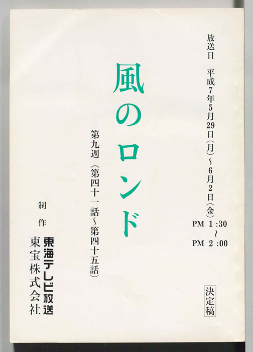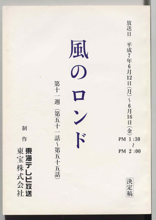 主な出演 : 田村亮,根上淳,野口ふみえ沼スタイル」を作ったと言われる「中島丈博」、主演を務めた森口瑤子は数々のドラマや映画に出演し、現在も母親役等、多くの出演作がある。原作漫画のタイトルは「風の輪舞(ロンド)」。「津雲むつみ」による少女漫画であり、集英社刊行「YOU」で連載されていた。