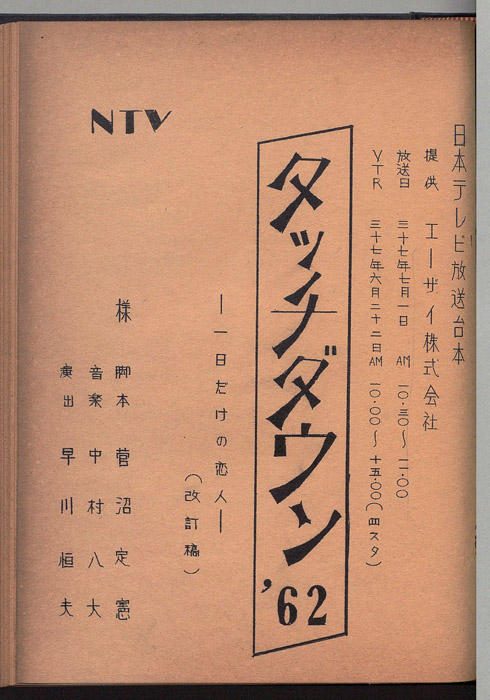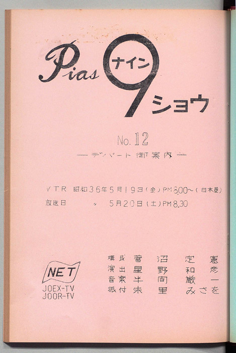 主な出演 : 森山加代子,坂本九,菊池正夫,富永ユキ,スリー・ペッツ,杉本圭三,牧かおる,のんきや,ダニー飯田とパラダイスキング,朱里みさお,モダンダンサーズ,ノーリン・ライト,ベニー・コーベ,高山アイコ,新崎ミチコ,木元教子,(演奏)宮間利之とニューハード
