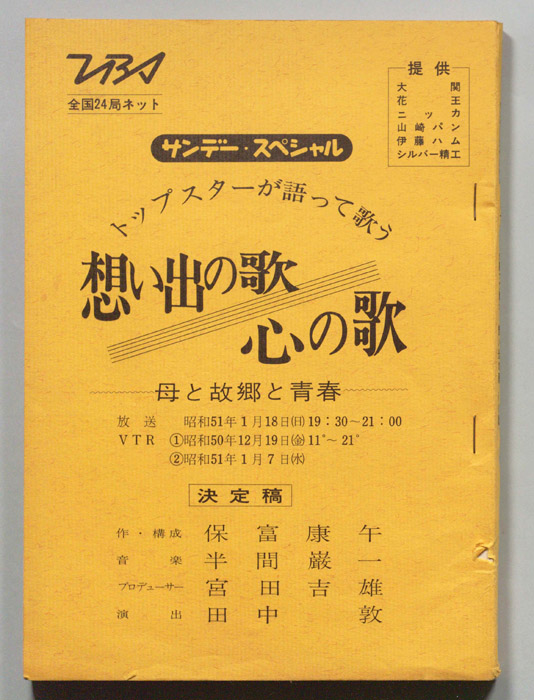 主な出演 : 由美かおる,横山プリンとアラモード:横山プリン,高井ギャラ,松原秀樹,徳光和夫:NTV,(コーラス)トライアングル,(踊り)ザ・ステッカーズ,(楽団)高橋達也と東京ユニオン,(ゲストスター)森昌子,つなき&みどり,殿様キングス,(む- 作家 : 西野皓三,岩城未知男,奥山侊伸,章田宙谷