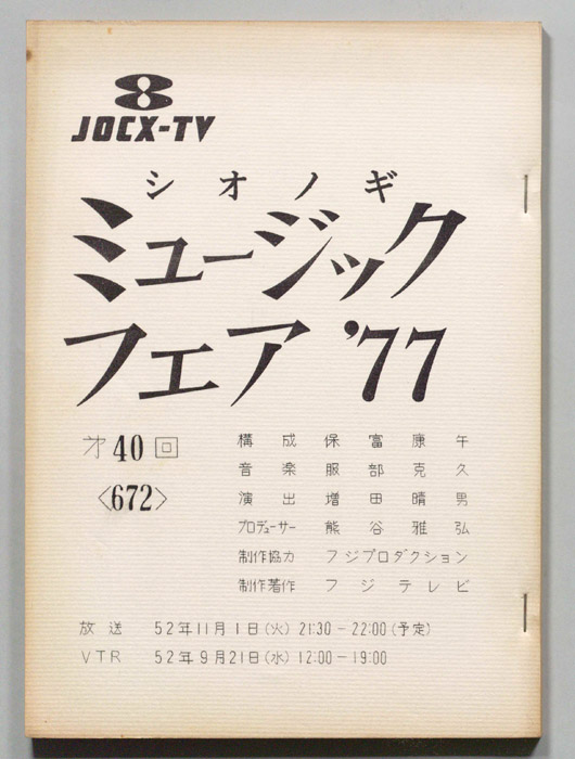 主な出演 : 由美かおる,横山プリンとアラモード:横山プリン,高井ギャラ,松原秀樹,徳光和夫:NTV,(踊り)ザ・ステッカーズ,(演奏)高橋達也と東京ユニオン,(ゲストスター)森昌子,中条きよし,シェリー