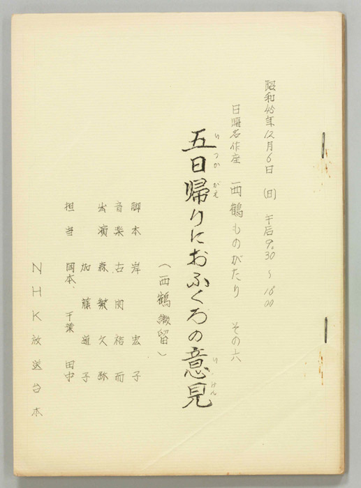 - 放送局 : NHK第一