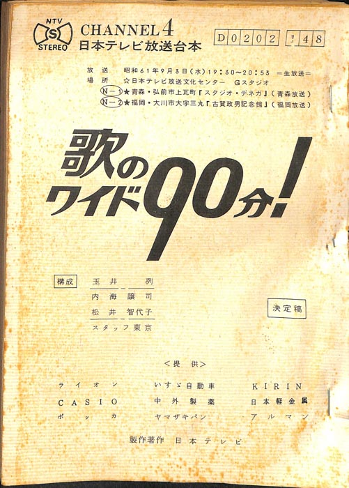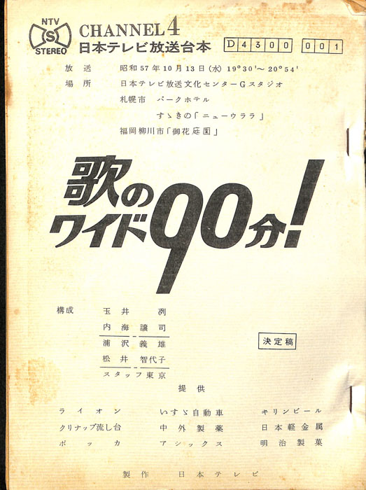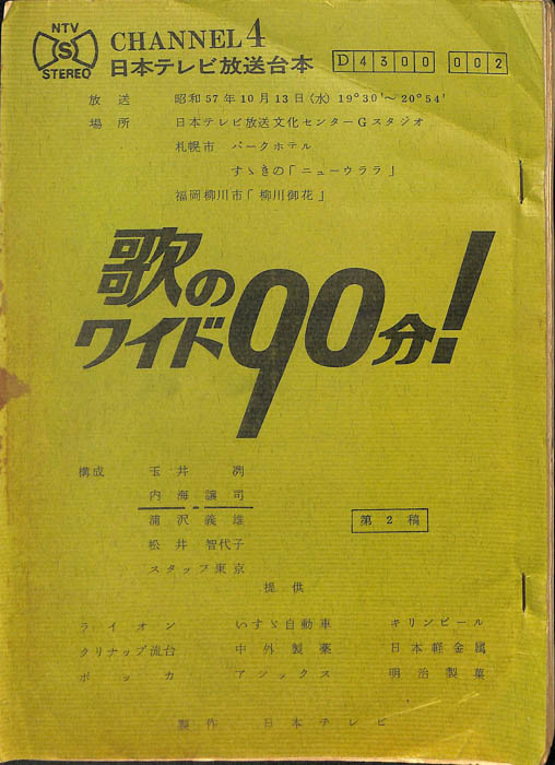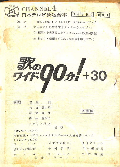 主な出演 : 由美かおる,横山プリンとアラモード:横山プリン,高井ギャラ,松原秀樹,徳光和夫:NTV,(踊り)ザ・ステッカーズ,ザ・フラッシャーズ,(コーラス)AVA・Singers,(演奏)宮間利之とニュー・ハードオーケストラ,(ゲストスター)森進一