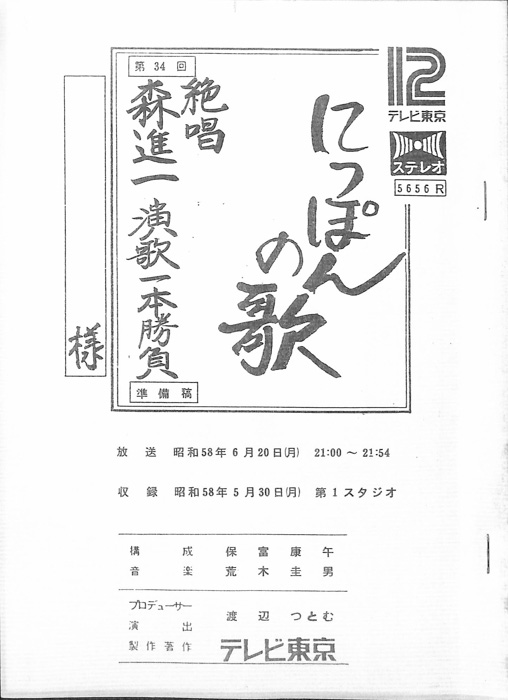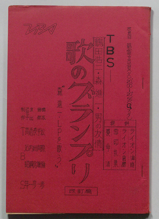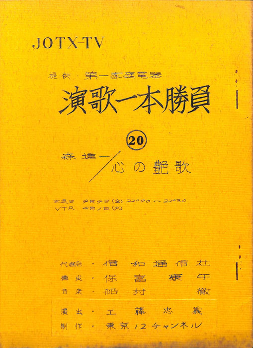 主な出演 : 森進一,加賀まりこ,三上真一郎,関根世津子,小柳ルミ子,中条きよし,(ナレーション)野間脩平,西野正一,(演奏)宮間利之とニューバード,新音楽協会,(コーラス)コールアカシア
