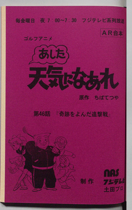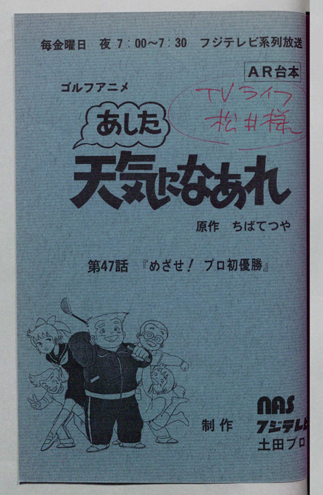 主な出演 : (向太陽)塩屋翼,(向武二)伊倉一恵,(向攻三)坂本千夏,(向糸子)小粥よう子,(Na)槇大輔,(古葉)田中秀幸,(太陽のキャディ)青木和代,(トラビノ),(リポーター),(TVアナウンサー),(カメラマン),(競技委員),(ギャラリー【あした天気になあれ】早くに父親を亡くし、食堂を営む母の手で育った「向太陽(むかい たいよう)」は、中学三年のとき、ふとしたきっかけでゴルフクラブを手にした。優れたセンスを持つ彼は、周囲からプロになることを勧められ、太