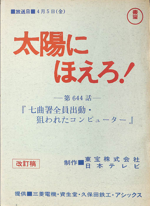 主な出演 : 石原裕次郎,竜雷太,神田正輝,沖雅也,木之元亮,山下真司,下川辰平,露口茂,友直子,横谷雄二,平田昭彦- 作家 : 古内一成,小川英