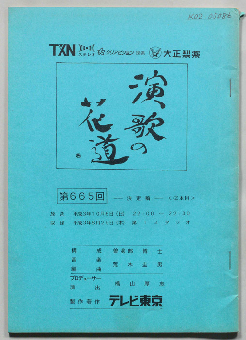 主な出演 : 金沢明子,原田直之,二階堂杏子,(司会)玉置宏,(踊り)花柳啓之社中,(伴奏)藤本琇丈社中<三味線>藤本秀輔,藤本秀康,<鳴物>山田鶴助,山田鶴志,<唄囃子>志村春美,小宮かよ子,(尺八)米谷龍男,(津軽三味線)沢田勝秋,(太鼓)美波那る駒