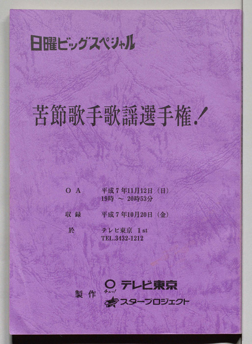 主な出演 : (司会)徳光和夫,松居直美,(審査員)市川昭介,荒木とよひさ,浅香光代,八代亜紀,(語り)日色ともゑ,(家族レポーター)菊田紋子,(出場歌手)大川真智子,大門三郎,前崎晋,大金吾,大橋まゆみ,出水二郎,舞京子,北岡ひろし,宮古次郎,北