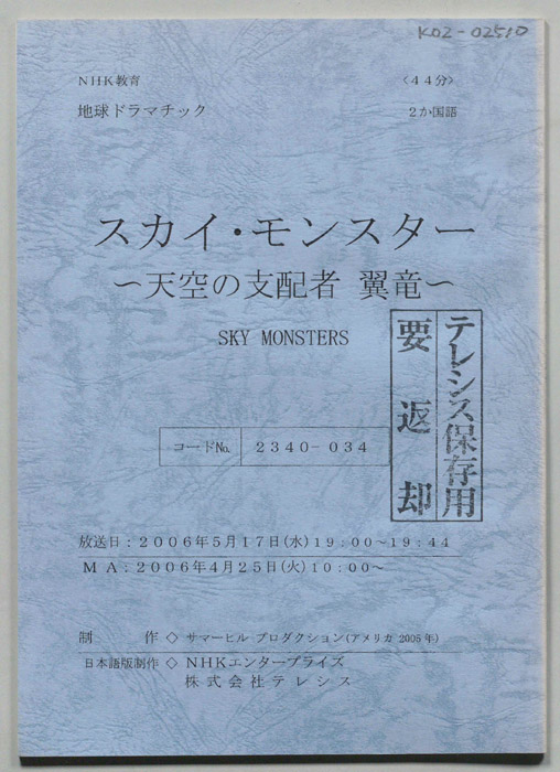 - 収蔵先 : 倉庫