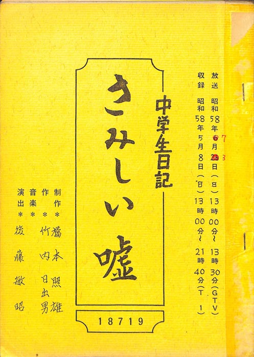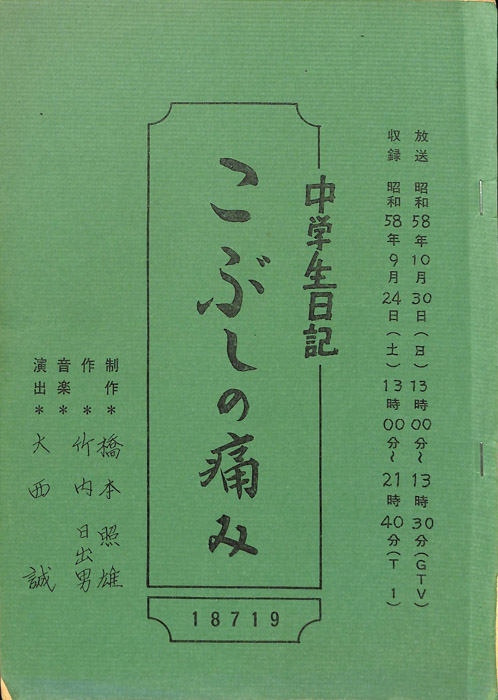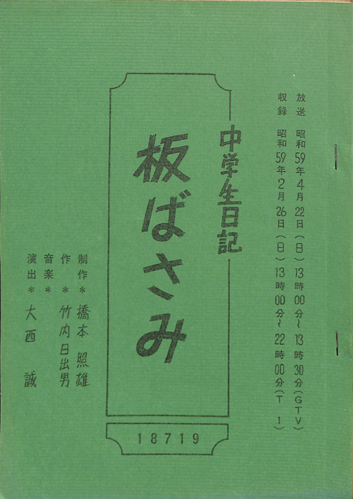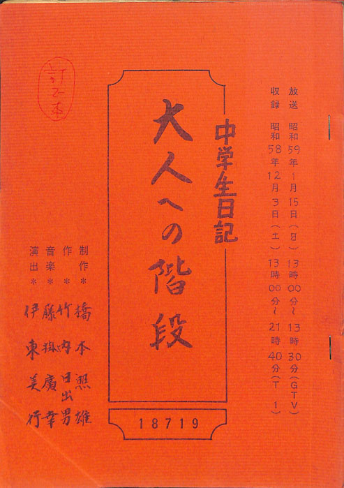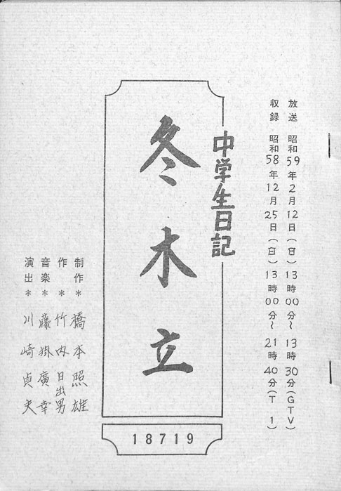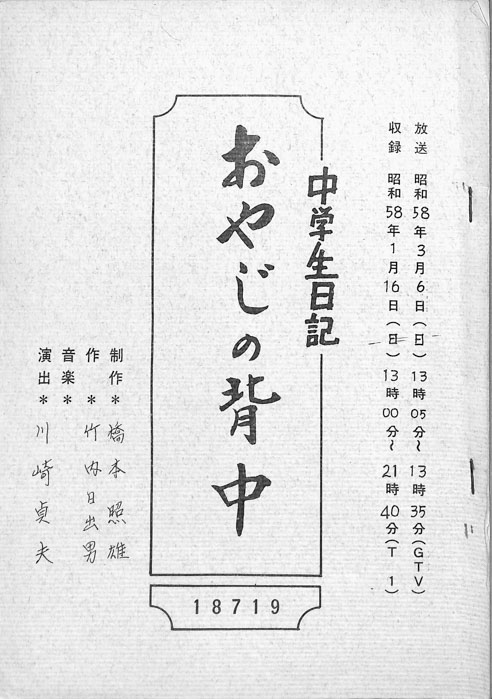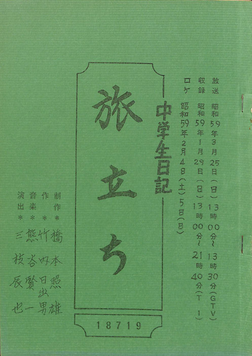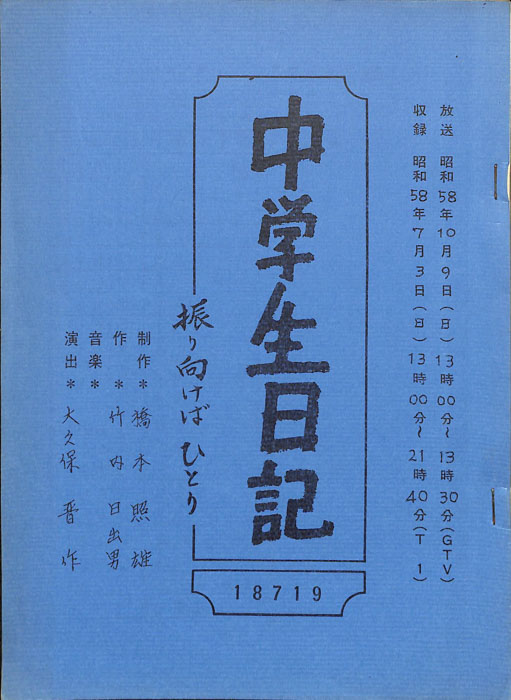 主な出演 : 若山佐知子,酒井伸,久野誓子【中学生日記】 中学生日記は1972年から2012年3月まで長きに渡って放送された学園ドラマである。1962年4月から放送された「中学生次郎」という番組を前身とし、何度か番組名を変更しつつ本ドラマに至る。最
