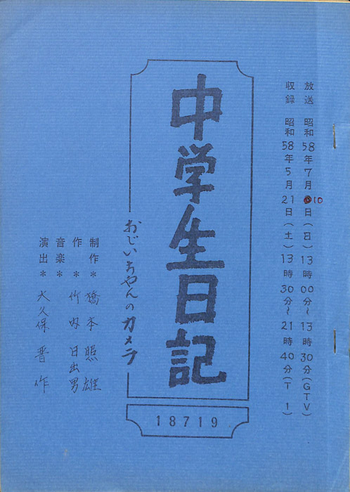 主な出演 : 金子佐枝子,大久保なみ,翁武留【中学生日記】 中学生日記は1972年から2012年3月まで長きに渡って放送された学園ドラマである。1962年4月から放送された「中学生次郎」という番組を前身とし、何度か番組名を変更しつつ本ドラマに至る。最
