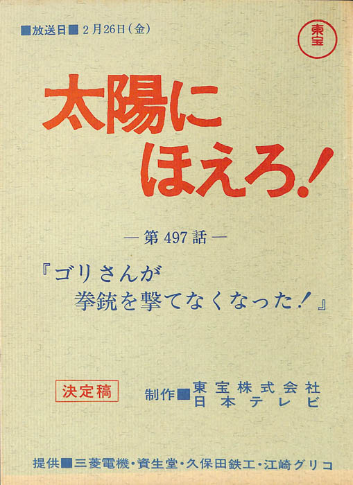 主な出演 : 石原裕次郎,竜雷太,神田正輝,三田村邦彦,木之元亮,渡辺徹,下川辰平,露口茂,長谷直美,友直子- 作家 : 古内一成,小川英