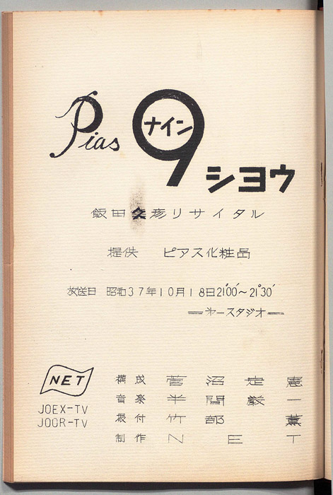 主な出演 : 飯田久彦,沢りり子,谷さとる,水森亜土,飯田久彦とザ・バンビーノ,ファンの少女達,飯田君のお母さんと弟さん,木元教子,竹部モダンバレエグループ,(演奏)宮間利之とニューハード,(コーラス)東京ルナ・アルモニコ- 作家 : 桜井義久