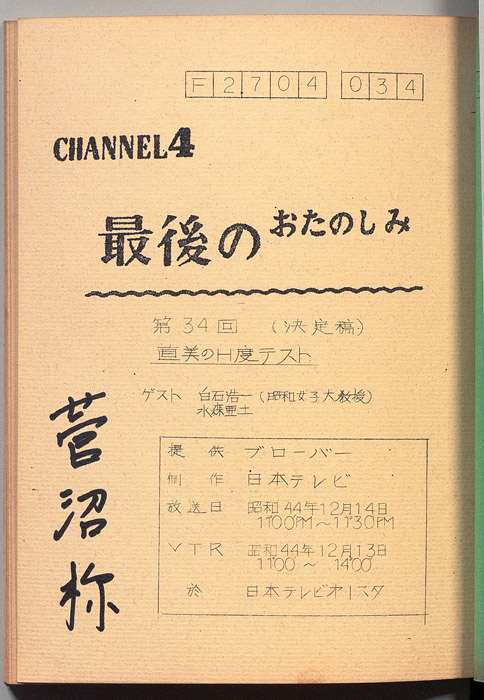 主な出演 : 藤村俊二,水森亜土,大谷知子アナウンサー
