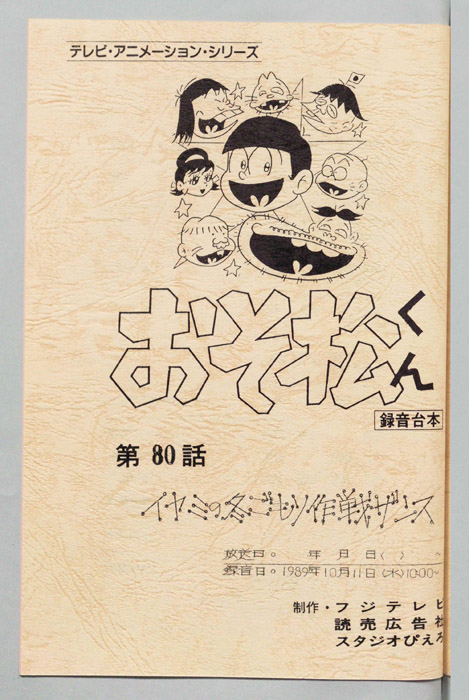 主な出演 : (イヤミ)肝付兼太,(チビ太)田中真弓,(デカパン)大平透,(ダヨーン)神山卓三,(おまわりさん)千葉繁,(おそ松)井上瑤,(トド松)林原めぐみ,(チョロ松)松本梨香,(ハタ坊)真柴摩利,(トトコ)松井菜桜子,(パパ)水鳥鉄夫,(ママ)横