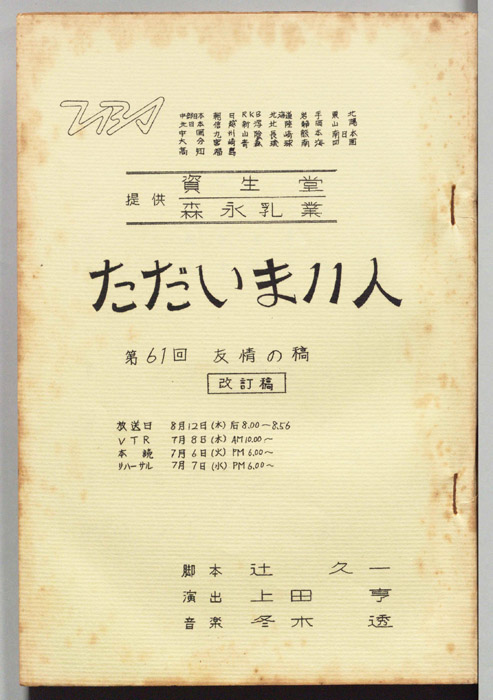 主な出演 : 小山田宗徳,水木麗子,阿部徹,中村美代子,近江俊輔,入江洋佑,杉裕之,木村浩,浅沼由美,秋山由紀雄,永井玄哉,田武謙三,小池明義,湊俊一,花岡菊子,真山知子,山崎猛,夏川かおる,柳谷寛,春日千里,古山桂治,有馬昌彦,峰阿矢,水島京子,鈴- 作家 : 窪田篤人