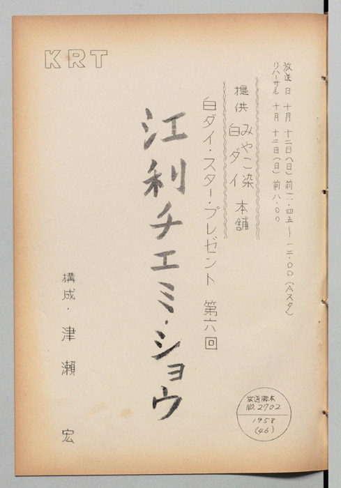 主な出演 : (11)(12)(13)(14)江利チエミ,(15)江利チエミ,森川千恵子