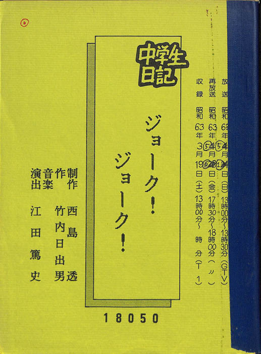 主な出演 : 木全義樹,酒向高幸,小高真奈美【中学生日記】 中学生日記は1972年から2012年3月まで長きに渡って放送された学園ドラマである。1962年4月から放送された「中学生次郎」という番組を前身とし、何度か番組名を変更しつつ本ドラマに至る。最