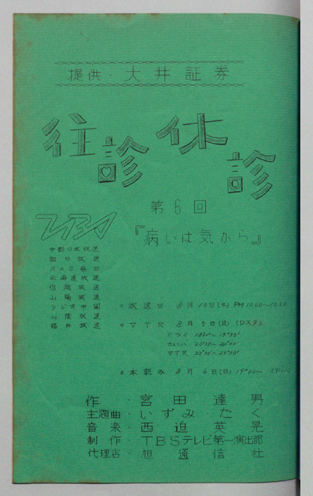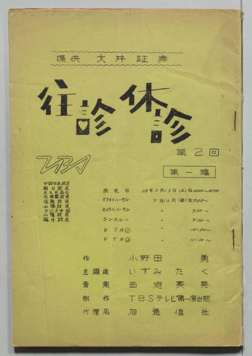 主な出演 : 野々村潔,三宅邦子,池田昌子,炎加世子,古今亭志ん朝,中西杏子,田村正和,葉山葉子,松島トモ子,目方誠,ジュディ・オング,増田晴彦,増田勝彦- 作家 : 櫻井康裕