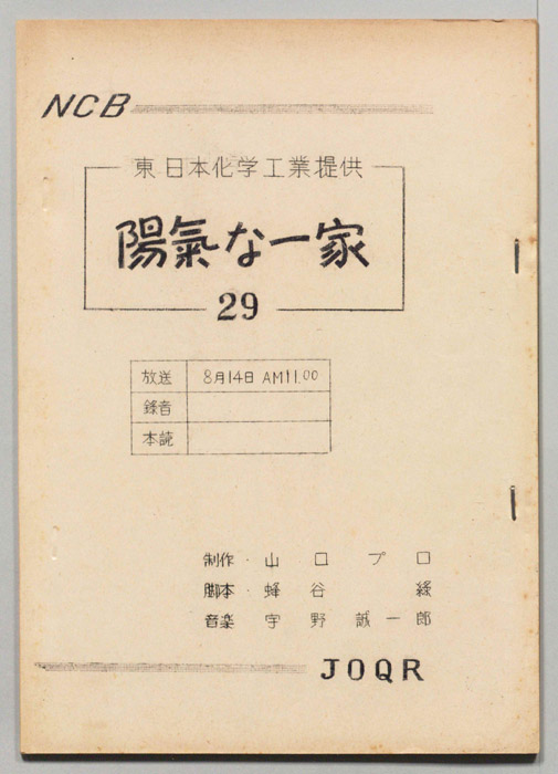 主な出演 : 野々浩介,黒田郷子,松川清,前川陽子,保坂礼二,池田昌子,寺島信子,西乃砂恵,緒方敏也,若山道子,肥土尚弘- 作家 : 谷屋充