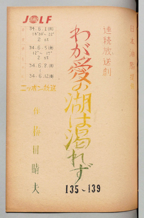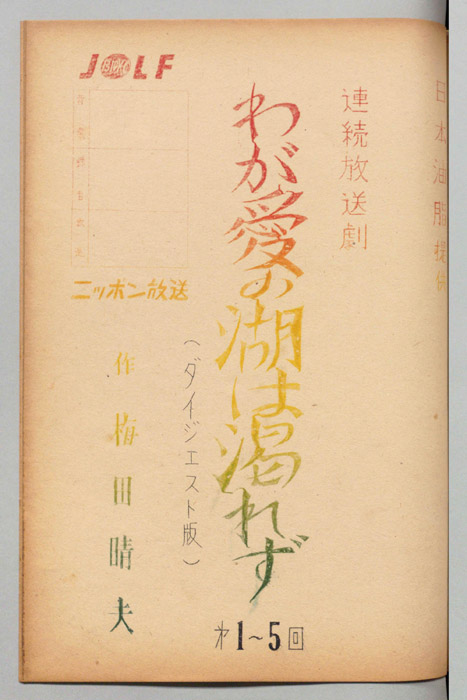 主な出演 : 吉行和子,家弓家正,佐伯徹,大川太郎,池田昌子,小林恭治,高橋昌也,原田洋子,森塚敏,寺島信子,(語り手)久松保夫- 作家 : 櫻井康裕