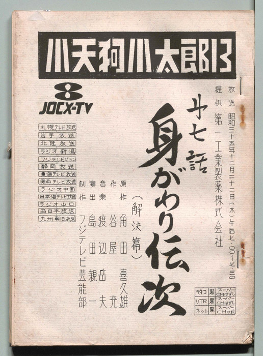 主な出演 : 中村吉右衛門,左とん平,三波伸介,曾我廼家一二三,服部哲治,池田昌子,長谷川峯子,生田三津子,(ナレーター)川久保潔