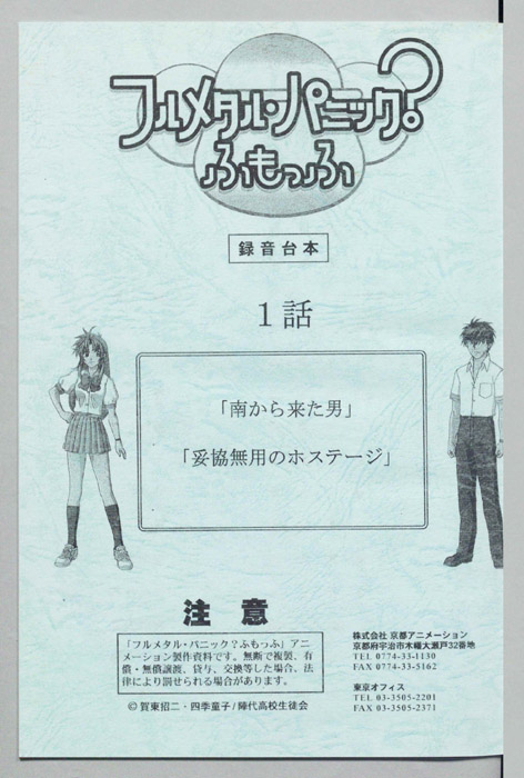 主な出演 : 田真端,(教頭)沢木郁也,(不良A)加瀬康之,(不良B)原沢勝広,(不良C)丸山純路,(不良D)川津泰彦,(高山清司)原沢勝広,(伊達悠太)丸山純路,(テロリスト)川津泰彦,(見ている男)原沢勝広,(ナイフの男)丸山純路,(リロードの声)森【フルメタル・パニック? ふもっふ】 いかなる国家にも属さない対テロ極秘傭兵組織『ミスリル』の特別対応班に所属する最年少エージェント『相良宗介』ある日、宗介は特殊な「力」を持つ日本の女子高生『千鳥かなめ』を