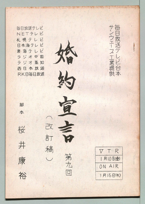 主な出演 : 野際陽子,川口浩,大川栄子,中丸忠雄,(ナレーター)芥川隆行,(擬斗)日尾孝司,(以下手書き)高橋長英,沢本忠雄,高林由紀子,根上淳,深沢英子,西本裕行,大貫一孝