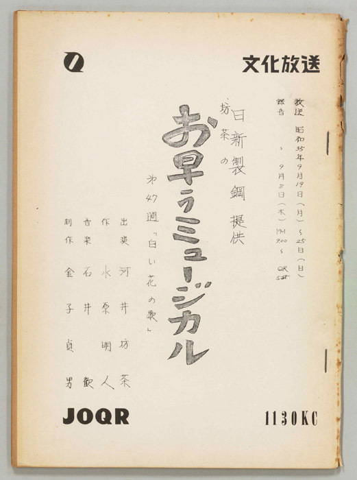 主な出演 : 千秋実,小山明子,鈴木正勝,池田秀一,珠めぐみ,石井浩,佐藤泉,大山尚雄,小峰千代子,桑山正一,浅野順子,吉田勝美,津野哲郎,滝那保代,(語り手)河井坊茶